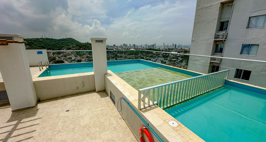 Este apartamento familiar cuenta con todas las comodidades necesarias para disfrutar de Cartagena, incluyendo acceso a la piscina y cercanía a restaurantes y playas.
